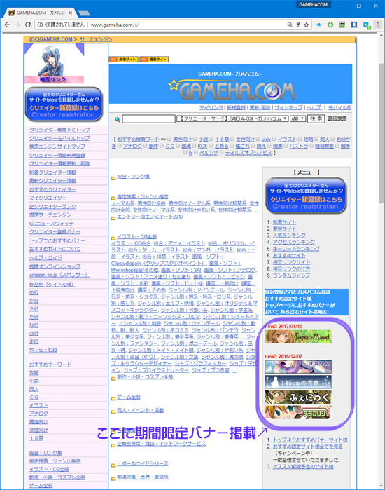登録をしていないサイト様にGAMEHA.COMのご紹介をお願いしています。