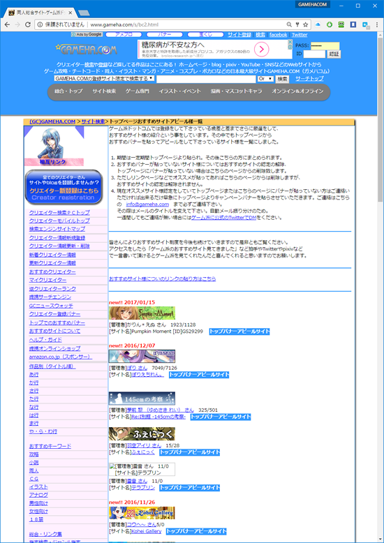 ゲーム派の登録数は、ID数35,800ですがおすすめサイト数は